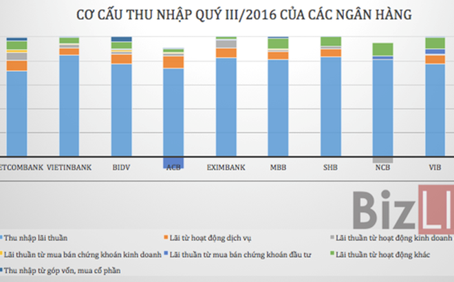 Có thể thấy thu nhập của các ngân hàng đang giảm dần phụ thuộc vào hoạt động tín dụng.